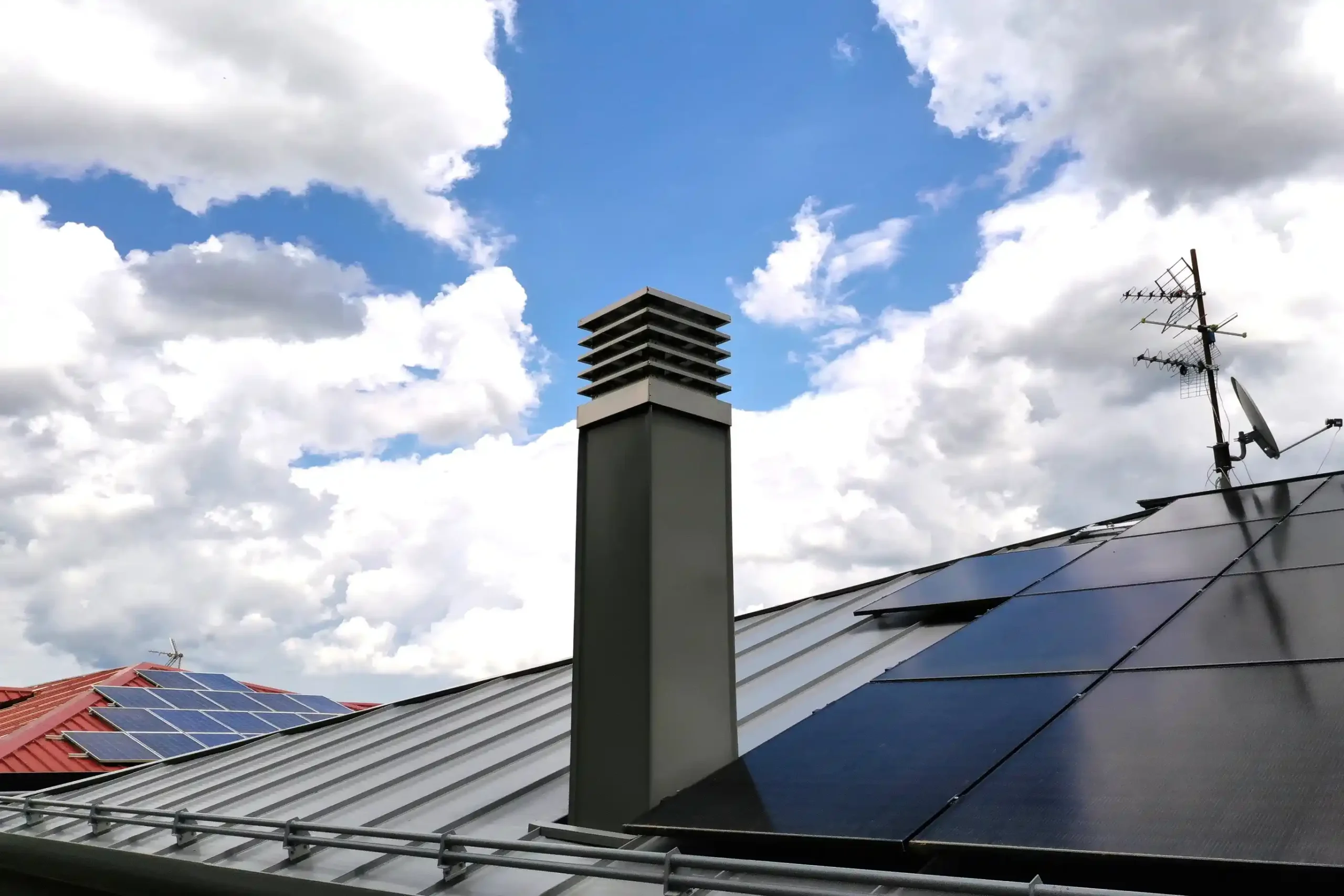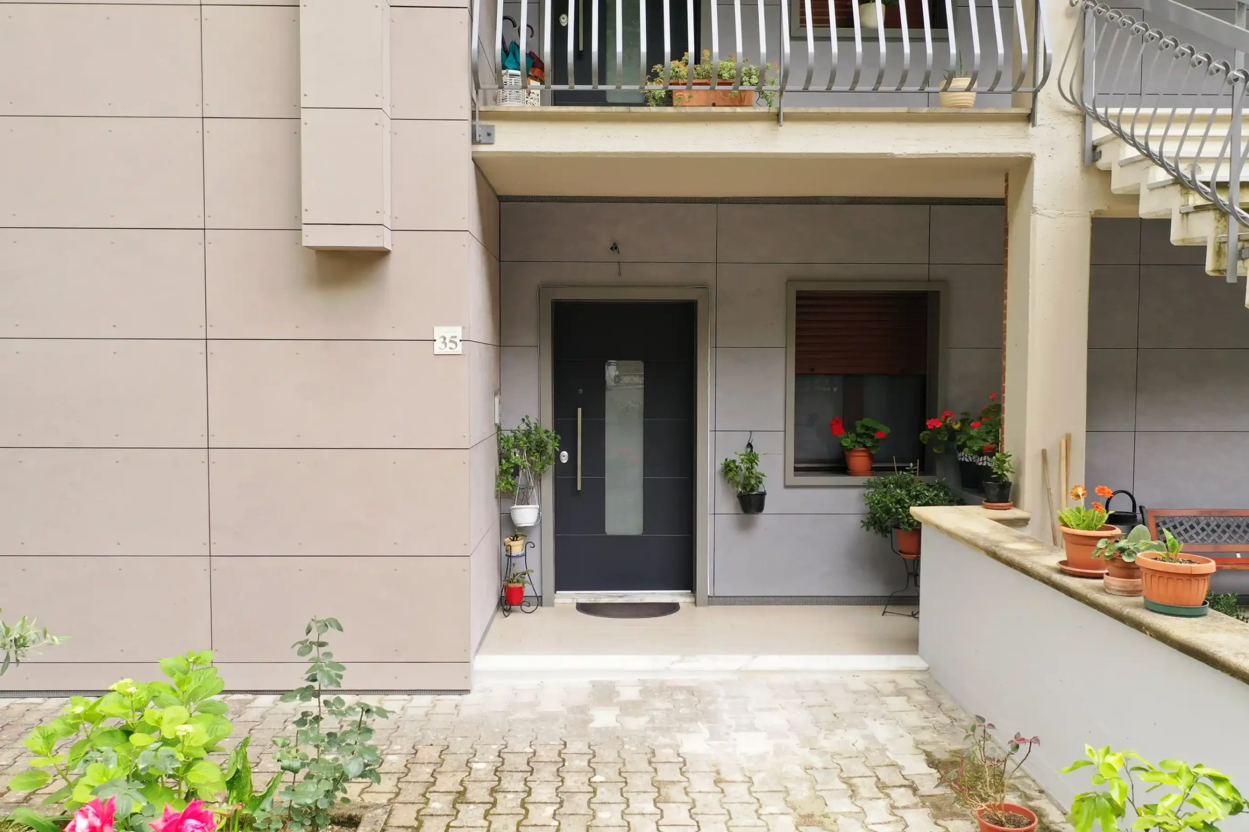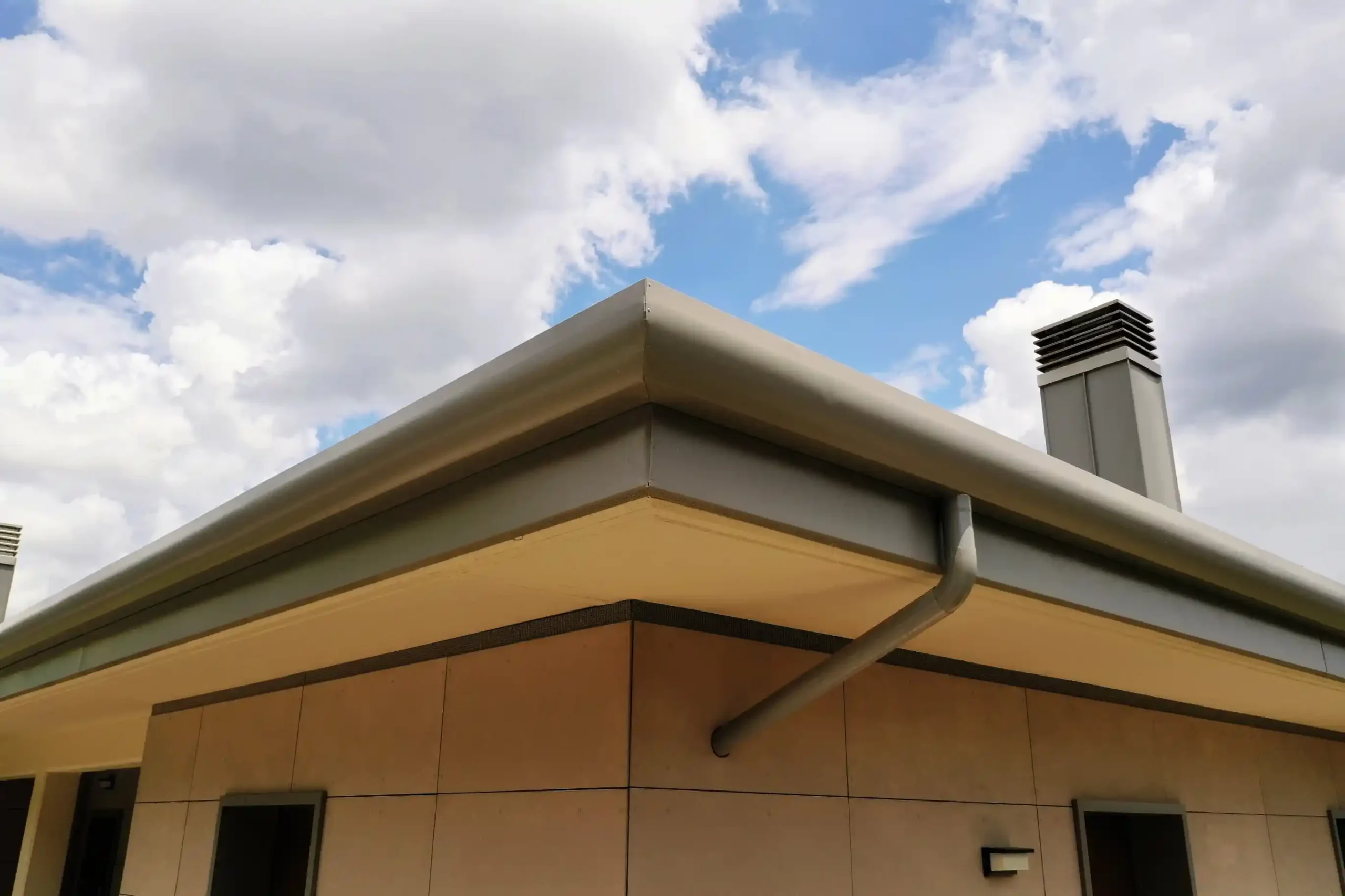 Copertura ventilata con finitura in lastre di alluminio profilate; Facciata ventilata, rivestita in pannelli di fibrocemento ecologico; Serramenti a taglio termico in alluminio.